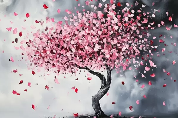 Poster Albero fiorito rosa su sfondo grigio Nr f43299