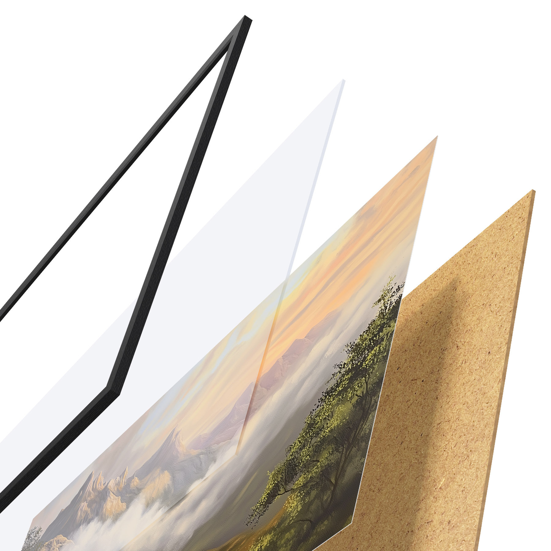 Il poster è composto da cornice, plexiglass, immagine stampata e supporto in truciolato. Il poster può essere immediatamente appeso alla parete grazie ai supporti sul retro.