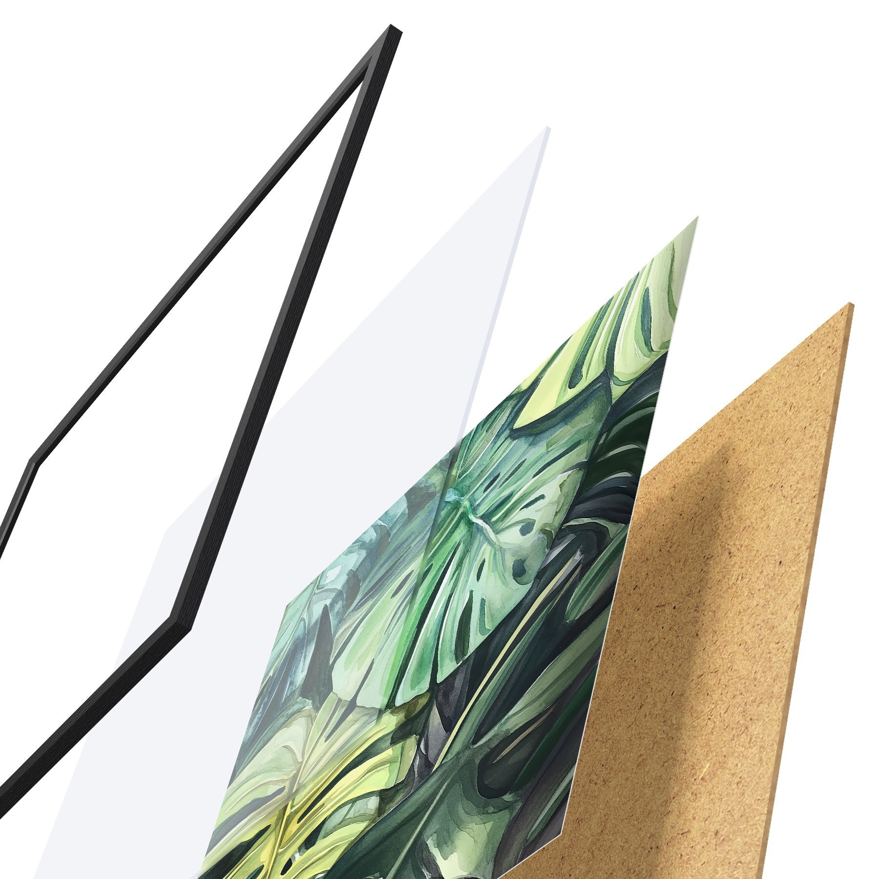 Il poster è composto da cornice, plexiglass, immagine stampata e supporto in truciolato. Il poster può essere immediatamente appeso alla parete grazie ai supporti sul retro.