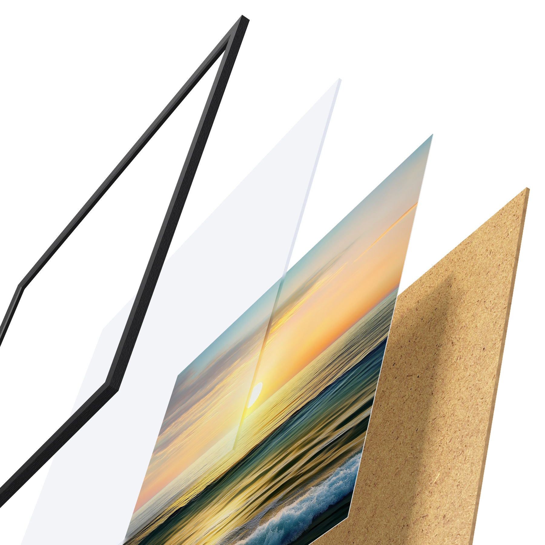 Il poster è composto da cornice, plexiglass, immagine stampata e supporto in truciolato. Il poster può essere immediatamente appeso alla parete grazie ai supporti sul retro.