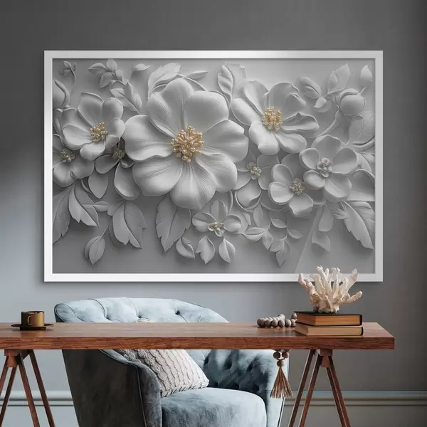 Poster fiori 3d grigi con accento giallo f43310