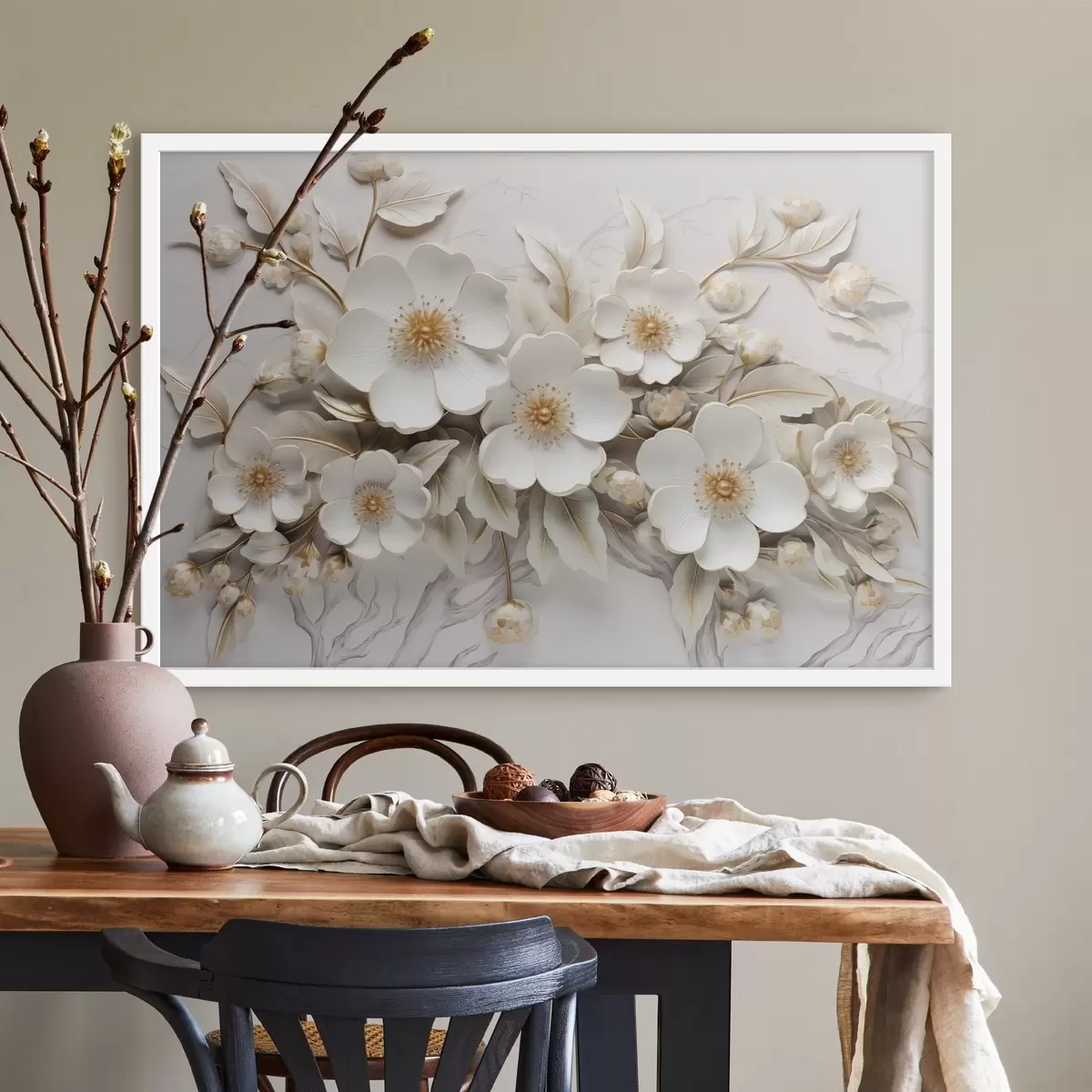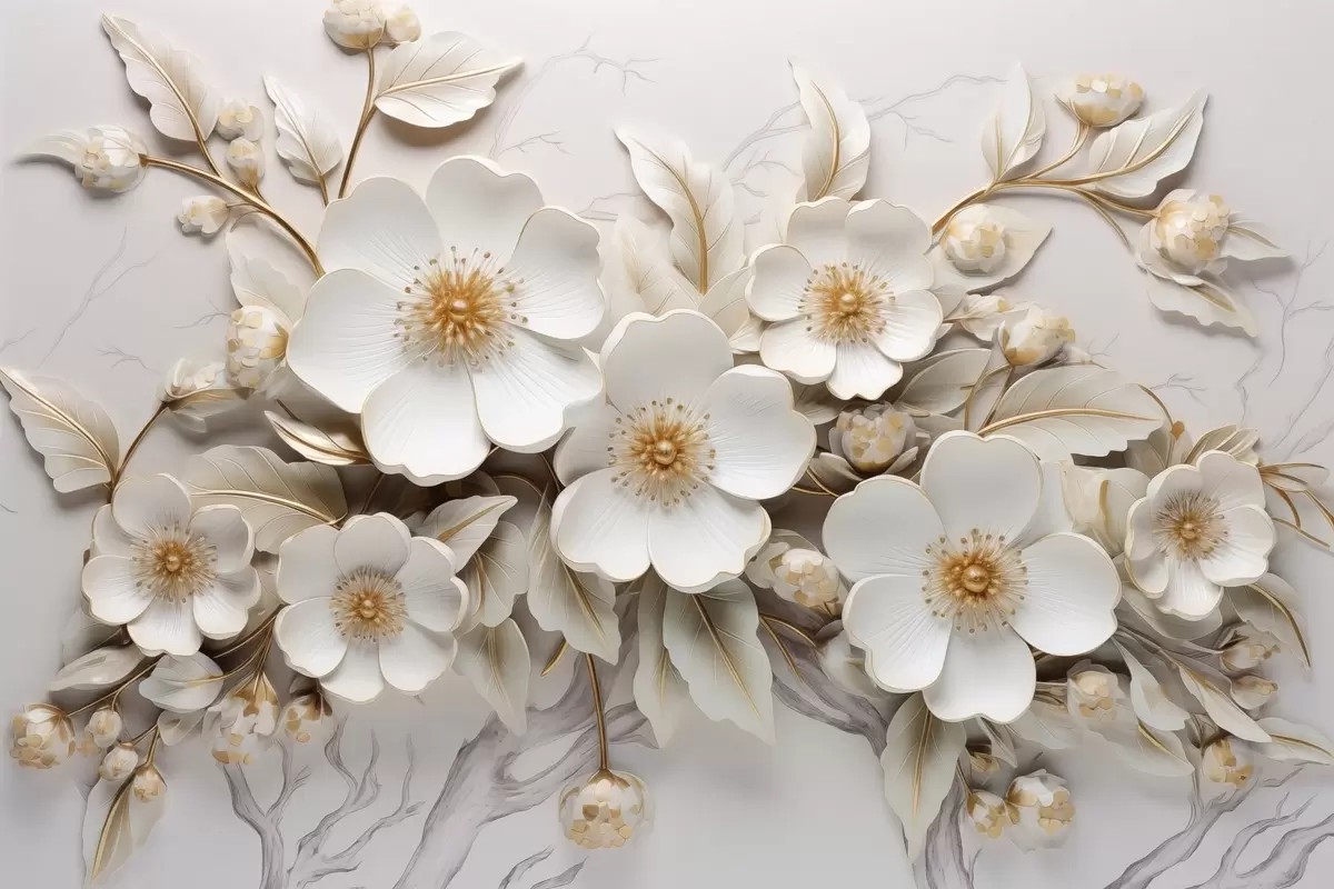 Poster fiori bianchi 3d in stile classico con accento giallo Nr f43313