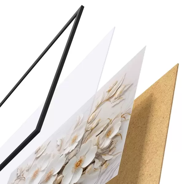 Il poster è composto da cornice, plexiglass, immagine stampata e supporto in truciolato. Il poster può essere immediatamente appeso alla parete grazie ai supporti sul retro.