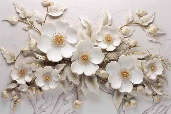 Poster fiori bianchi 3d in stile classico con accento giallo Nr f43313