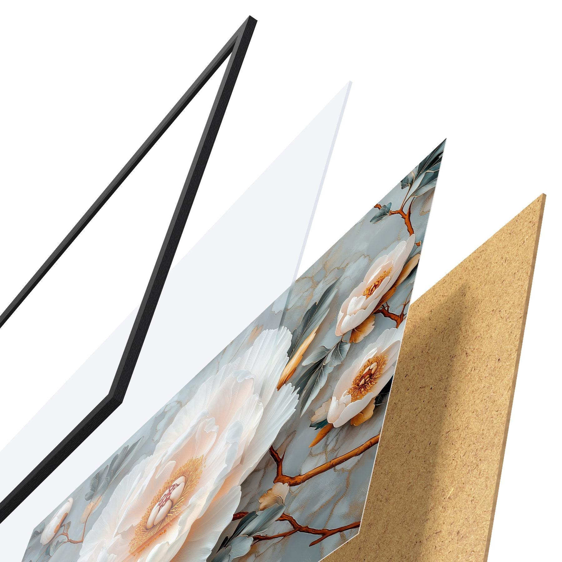 Il poster è composto da cornice, plexiglass, immagine stampata e supporto in truciolato. Il poster può essere immediatamente appeso alla parete grazie ai supporti sul retro.
