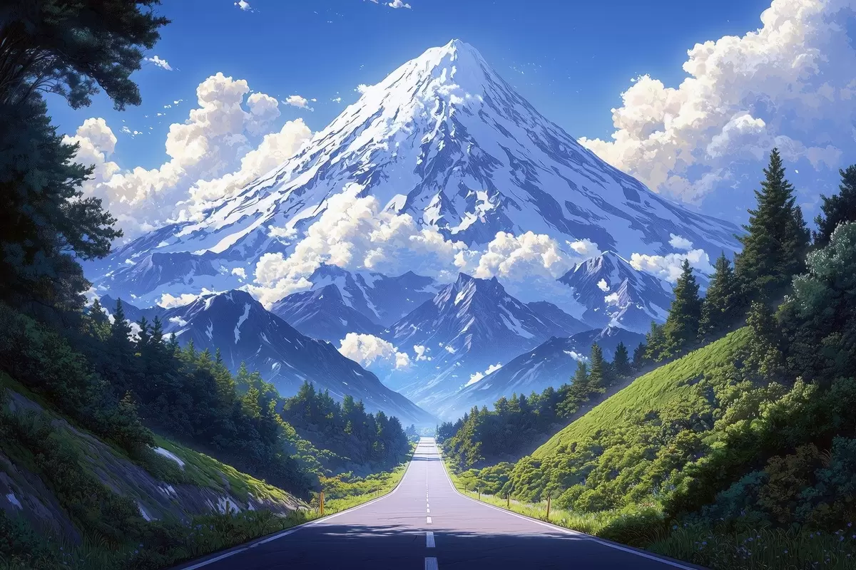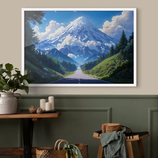 Poster Strada verso le montagne con nuvole e boschi tutt'intorno Nr f43317