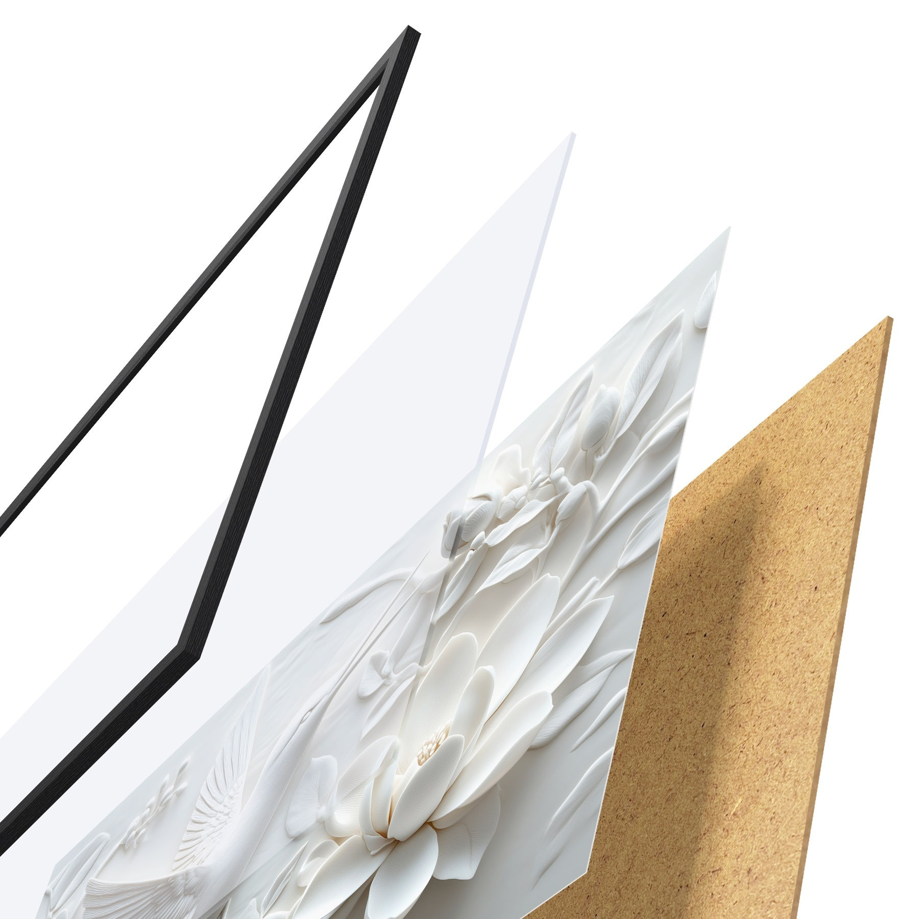Il poster è composto da cornice, plexiglass, immagine stampata e supporto in truciolato. Il poster può essere immediatamente appeso alla parete grazie ai supporti sul retro.