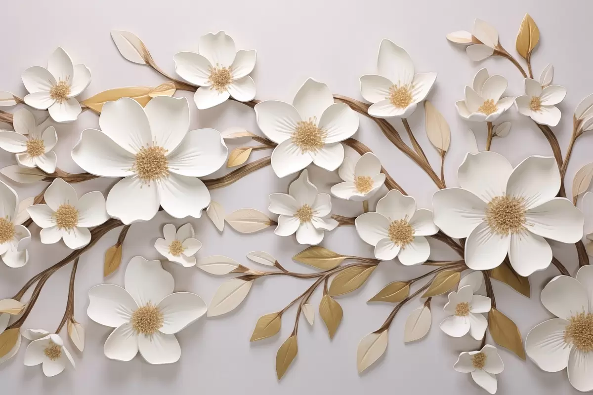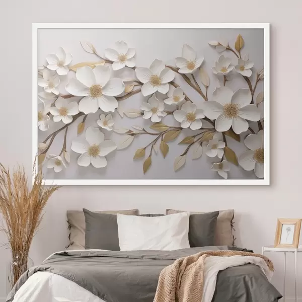 Poster Fiori bianchi nello stile di un affresco in rilievo con accenti gialli Nr f43331