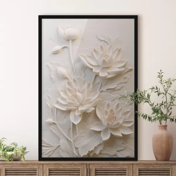 Poster Modanatura bianca, imitazione, fiori Nr f43334