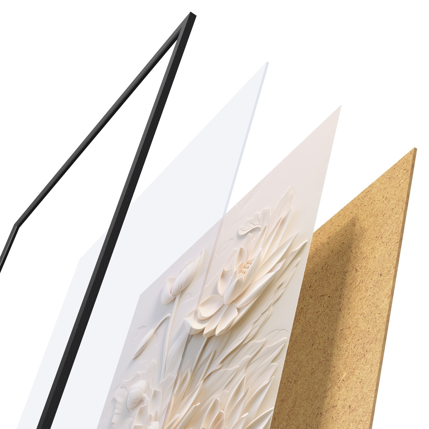 Il poster è composto da cornice, plexiglass, immagine stampata e supporto in truciolato. Il poster può essere immediatamente appeso alla parete grazie ai supporti sul retro.