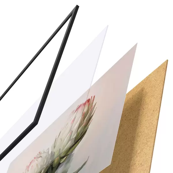 Il poster è composto da cornice, plexiglass, immagine stampata e supporto in truciolato. Il poster può essere immediatamente appeso alla parete grazie ai supporti sul retro.