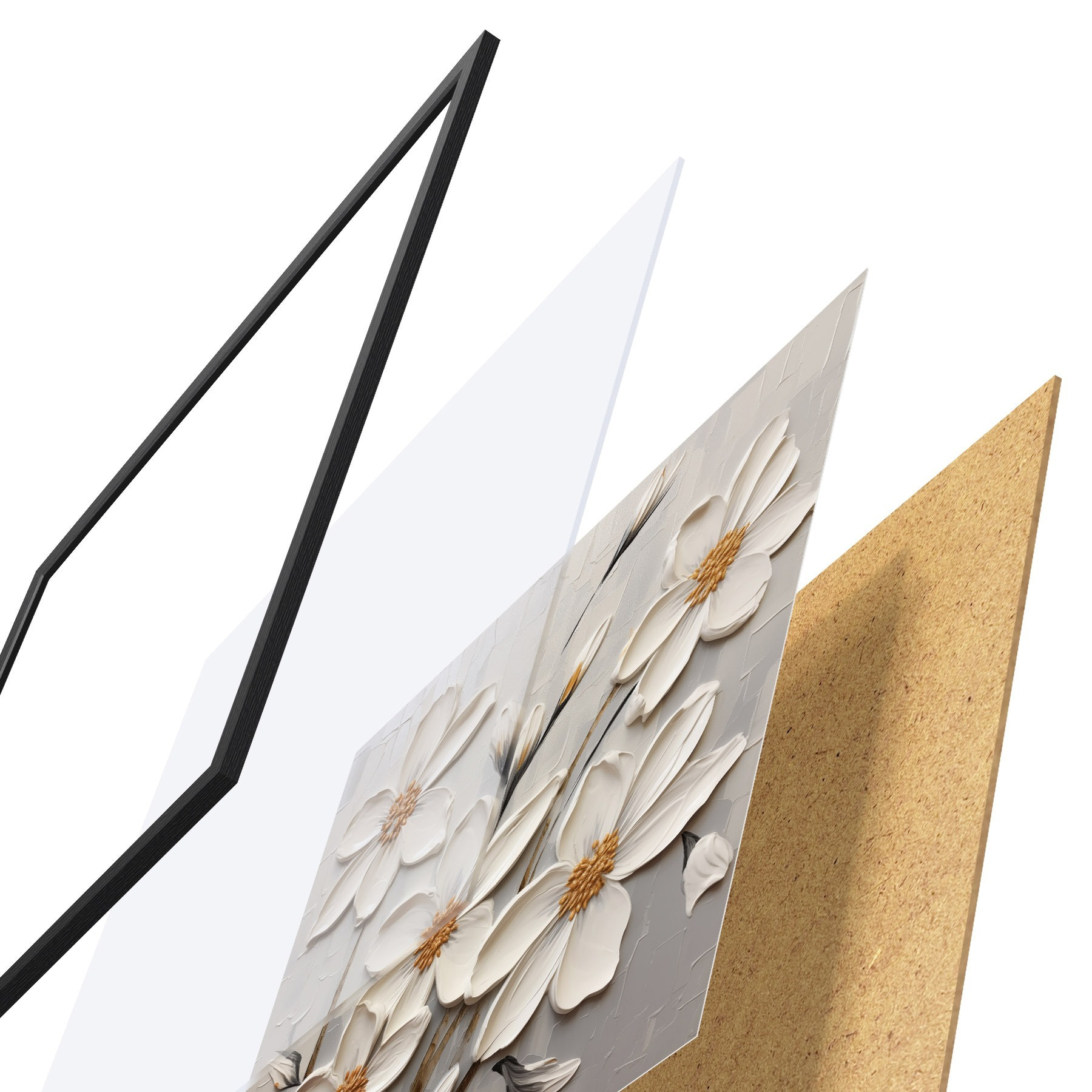 Poster Fiori bianchi voluminosi in stile pittura con grandi pennellate f43366
