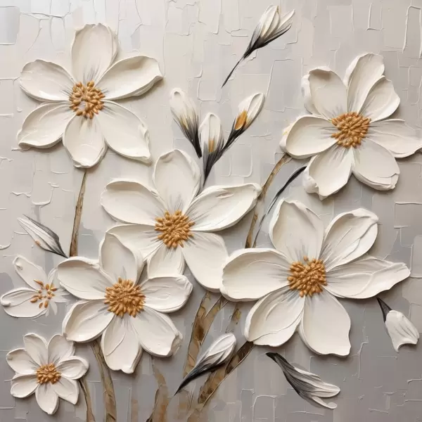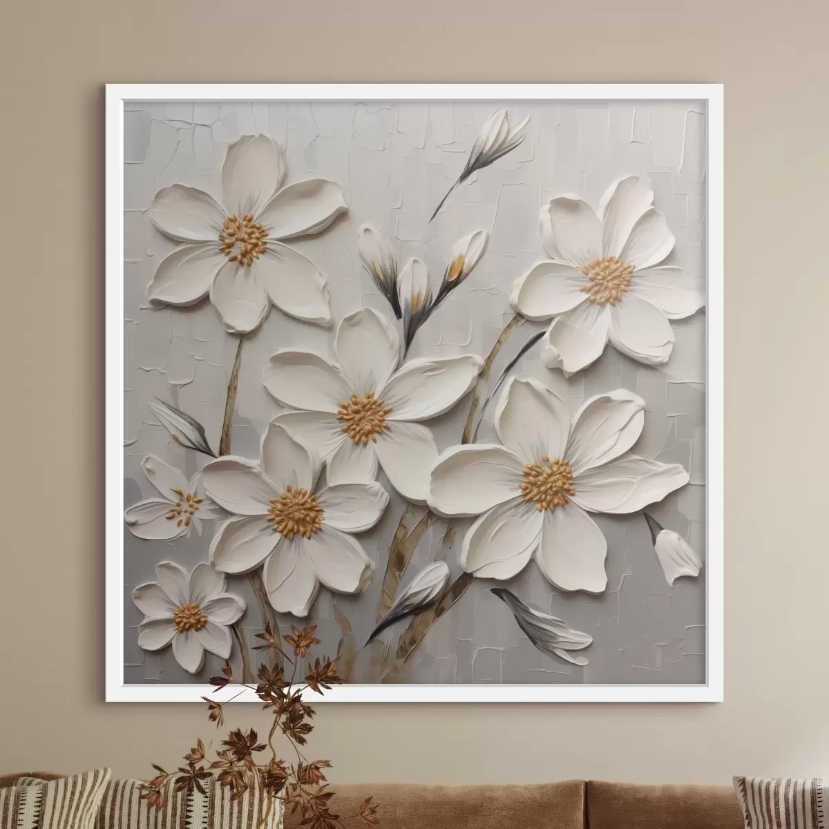 Poster Fiori bianchi voluminosi in stile pittura con grandi pennellate f43366
