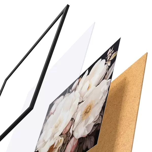 Il poster è composto da cornice, plexiglass, immagine stampata e supporto in truciolato. Il poster può essere immediatamente appeso alla parete grazie ai supporti sul retro.