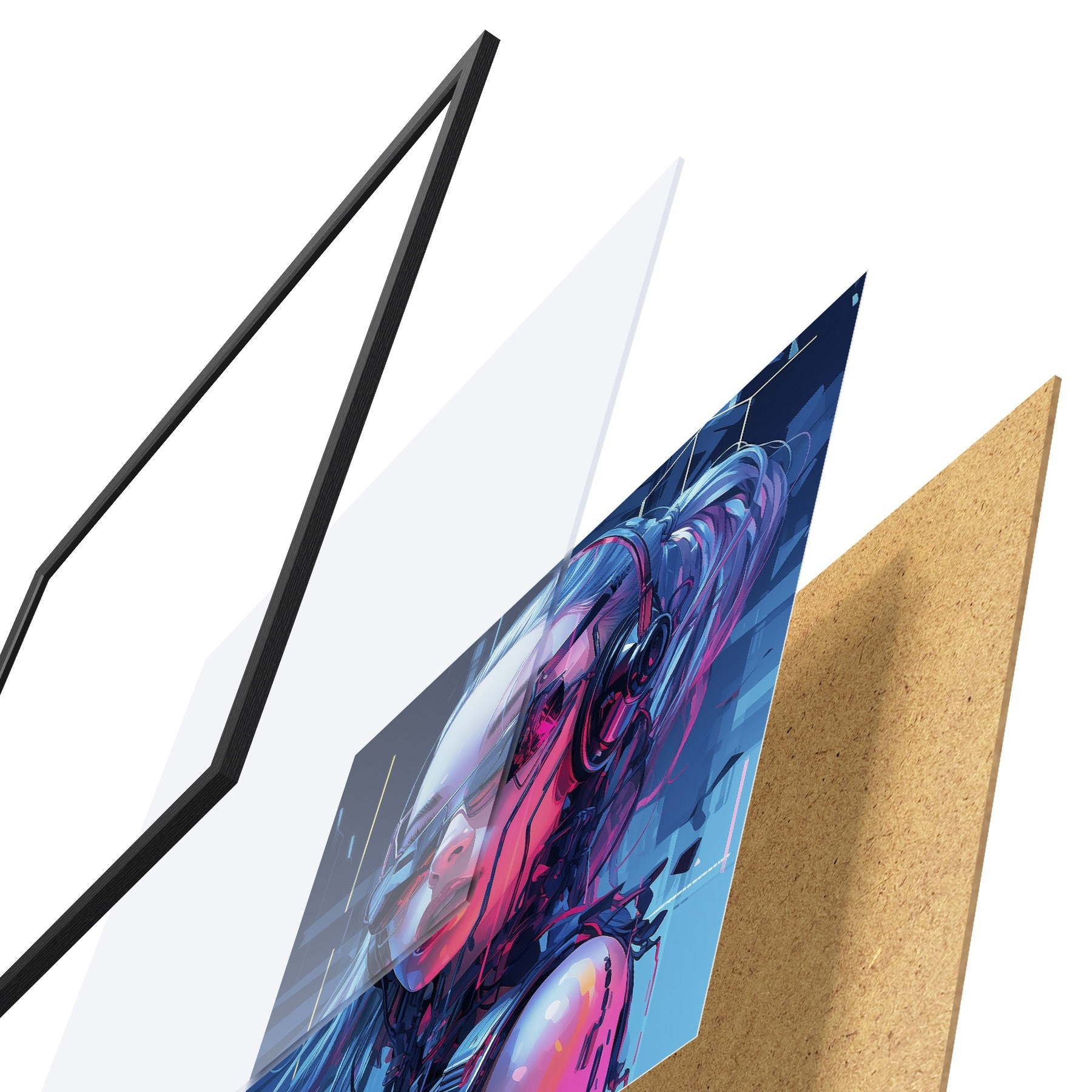 Il poster è composto da cornice, plexiglass, immagine stampata e supporto in truciolato. Il poster può essere immediatamente appeso alla parete grazie ai supporti sul retro.