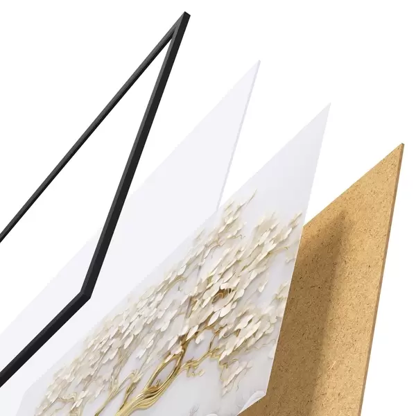 Il poster è composto da cornice, plexiglass, immagine stampata e supporto in truciolato. Il poster può essere immediatamente appeso alla parete grazie ai supporti sul retro.