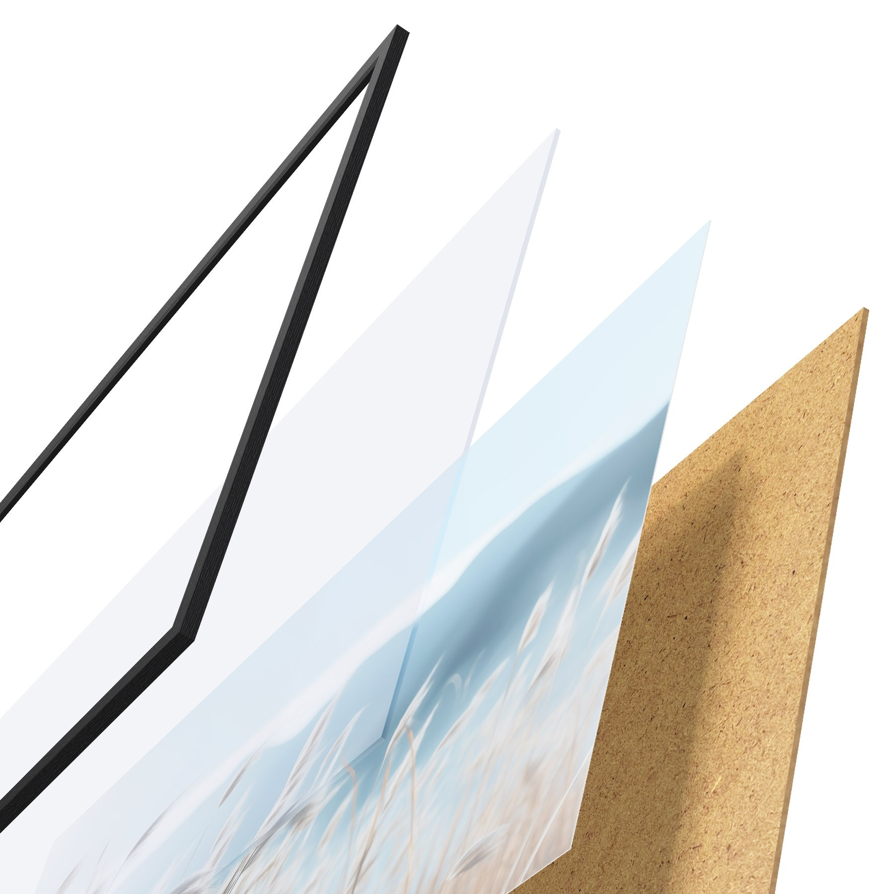 Il poster è composto da cornice, plexiglass, immagine stampata e supporto in truciolato. Il poster può essere immediatamente appeso alla parete grazie ai supporti sul retro.