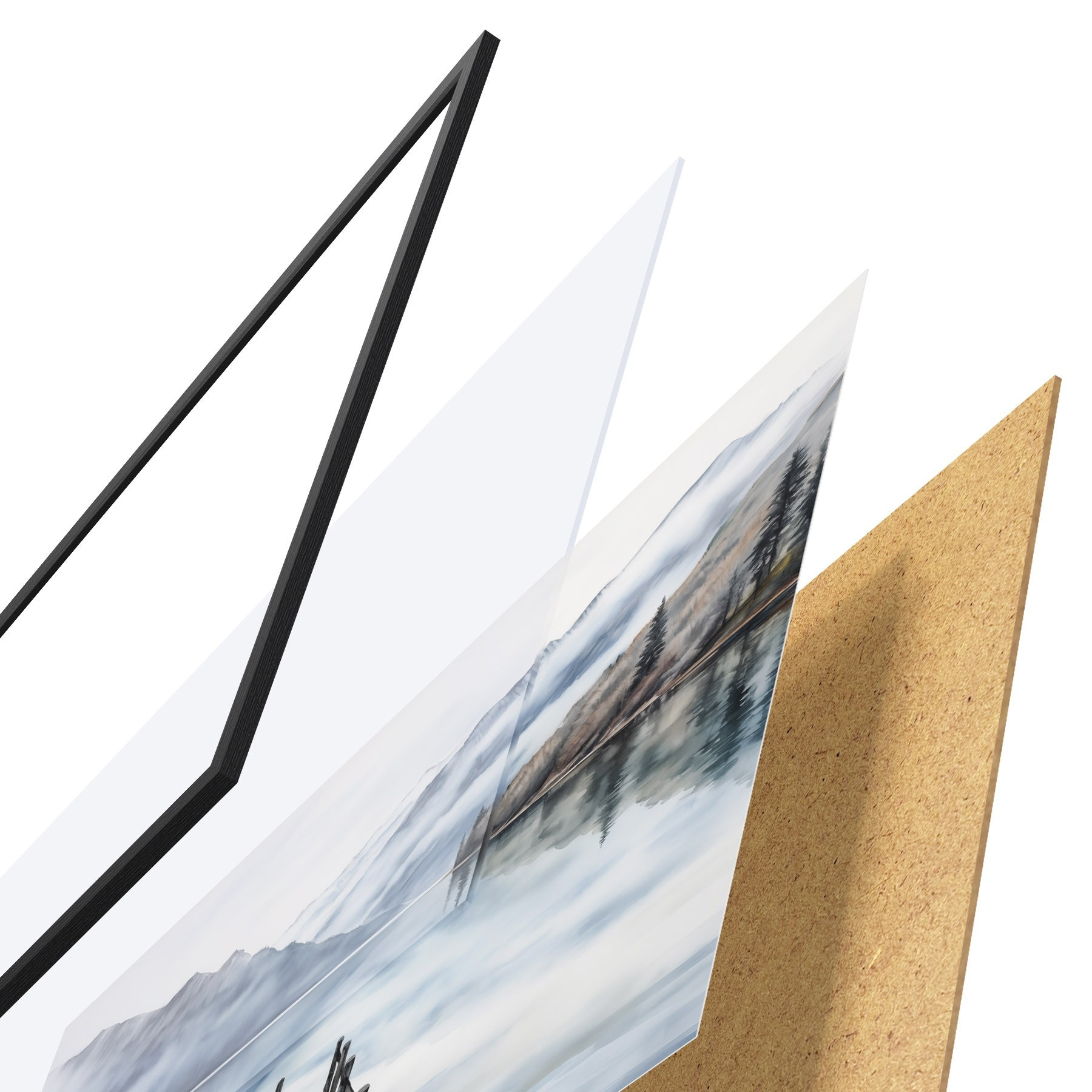 Il poster è composto da cornice, plexiglass, immagine stampata e supporto in truciolato. Il poster può essere immediatamente appeso alla parete grazie ai supporti sul retro.