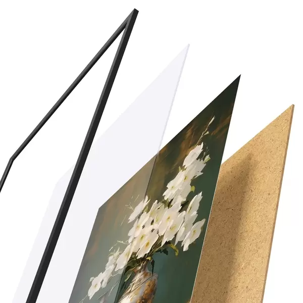 Il poster è composto da cornice, plexiglass, immagine stampata e supporto in truciolato. Il poster può essere immediatamente appeso alla parete grazie ai supporti sul retro.