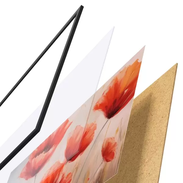 Il poster è composto da cornice, plexiglass, immagine stampata e supporto in truciolato. Il poster può essere immediatamente appeso alla parete grazie ai supporti sul retro.