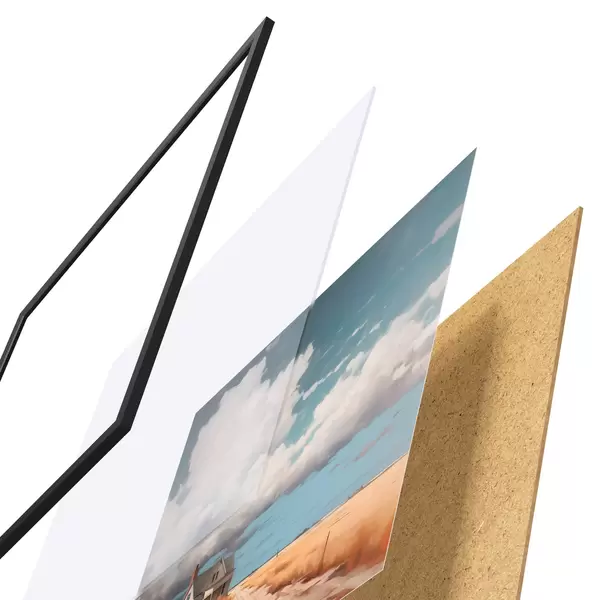 Il poster è composto da cornice, plexiglass, immagine stampata e supporto in truciolato. Il poster può essere immediatamente appeso alla parete grazie ai supporti sul retro.