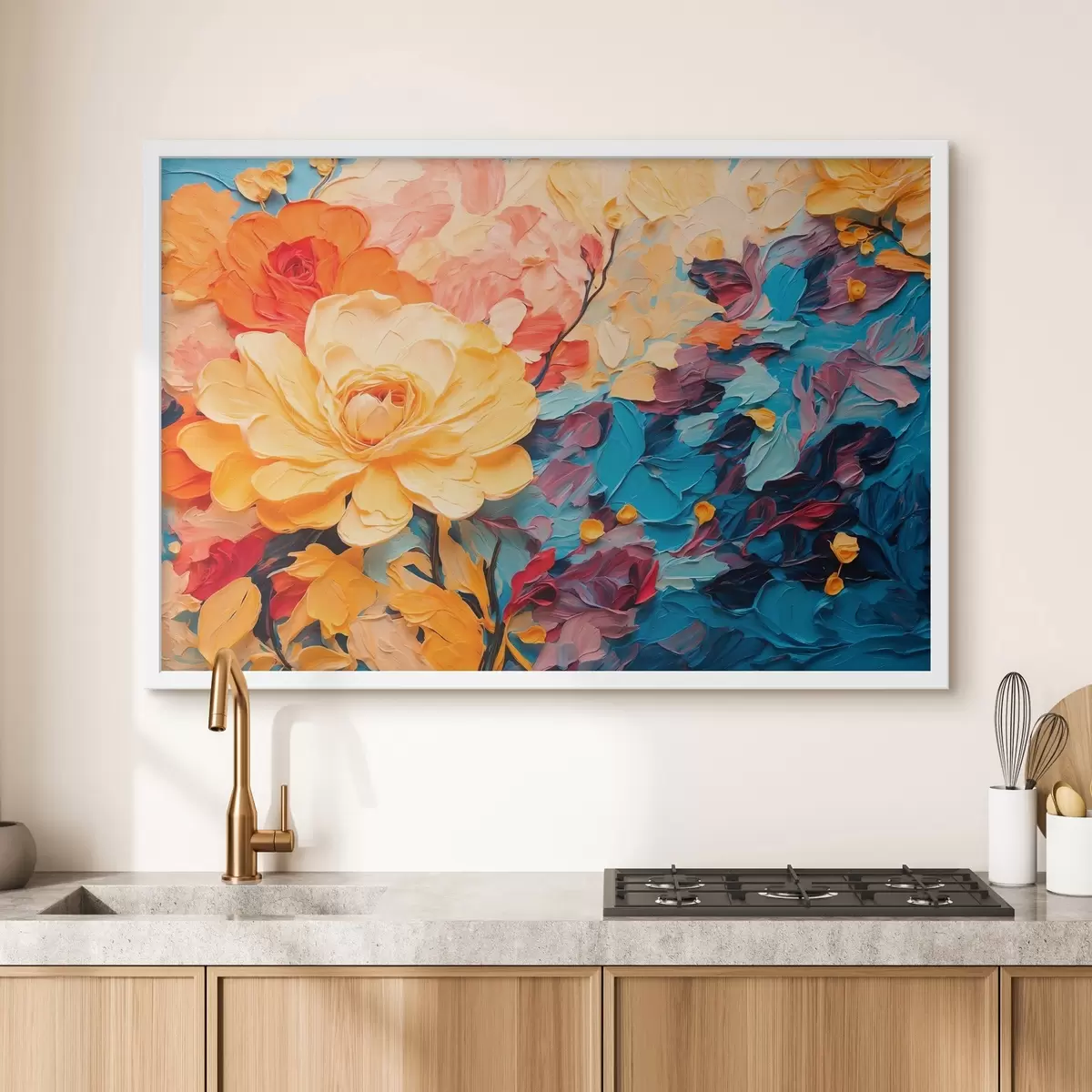 Poster Fiori su sfondo astratto in stile pittura ad olio Nr f43442