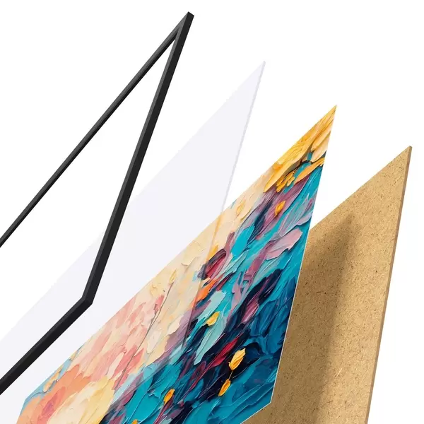 Il poster è composto da cornice, plexiglass, immagine stampata e supporto in truciolato. Il poster può essere immediatamente appeso alla parete grazie ai supporti sul retro.