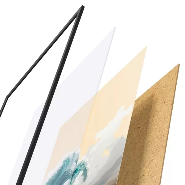 Il poster è composto da cornice, plexiglass, immagine stampata e supporto in truciolato. Il poster può essere immediatamente appeso alla parete grazie ai supporti sul retro.