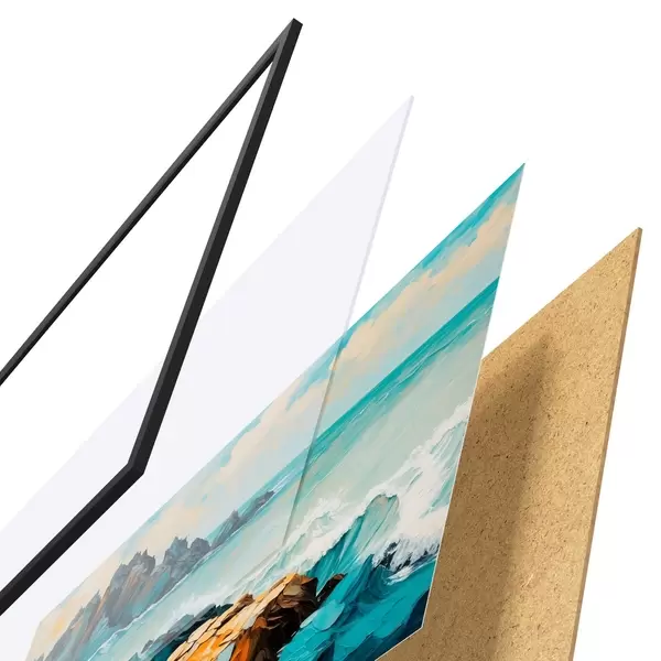 Il poster è composto da cornice, plexiglass, immagine stampata e supporto in truciolato. Il poster può essere immediatamente appeso alla parete grazie ai supporti sul retro.
