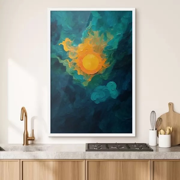 Poster Sole su sfondo scuro in stile pittura ad olio f43459