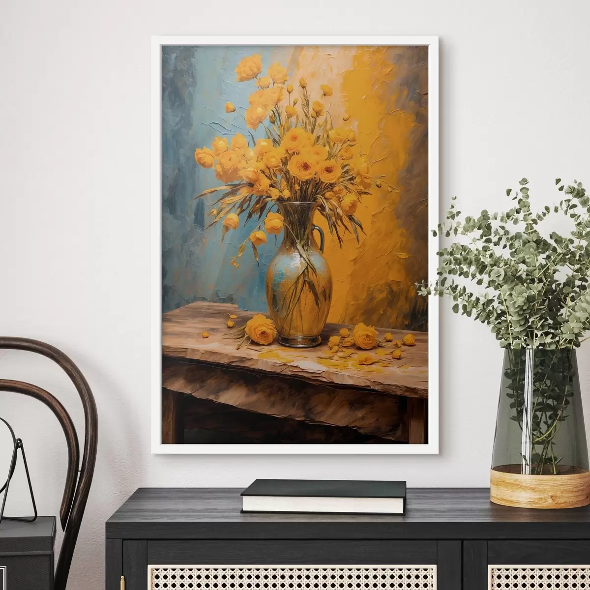 Poster Fiori gialli in vaso su un tavolo Nr f43462