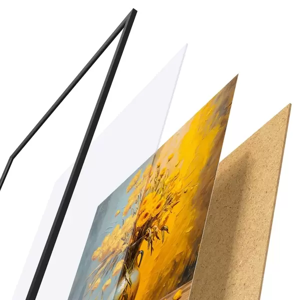 Il poster è composto da cornice, plexiglass, immagine stampata e supporto in truciolato. Il poster può essere immediatamente appeso alla parete grazie ai supporti sul retro.