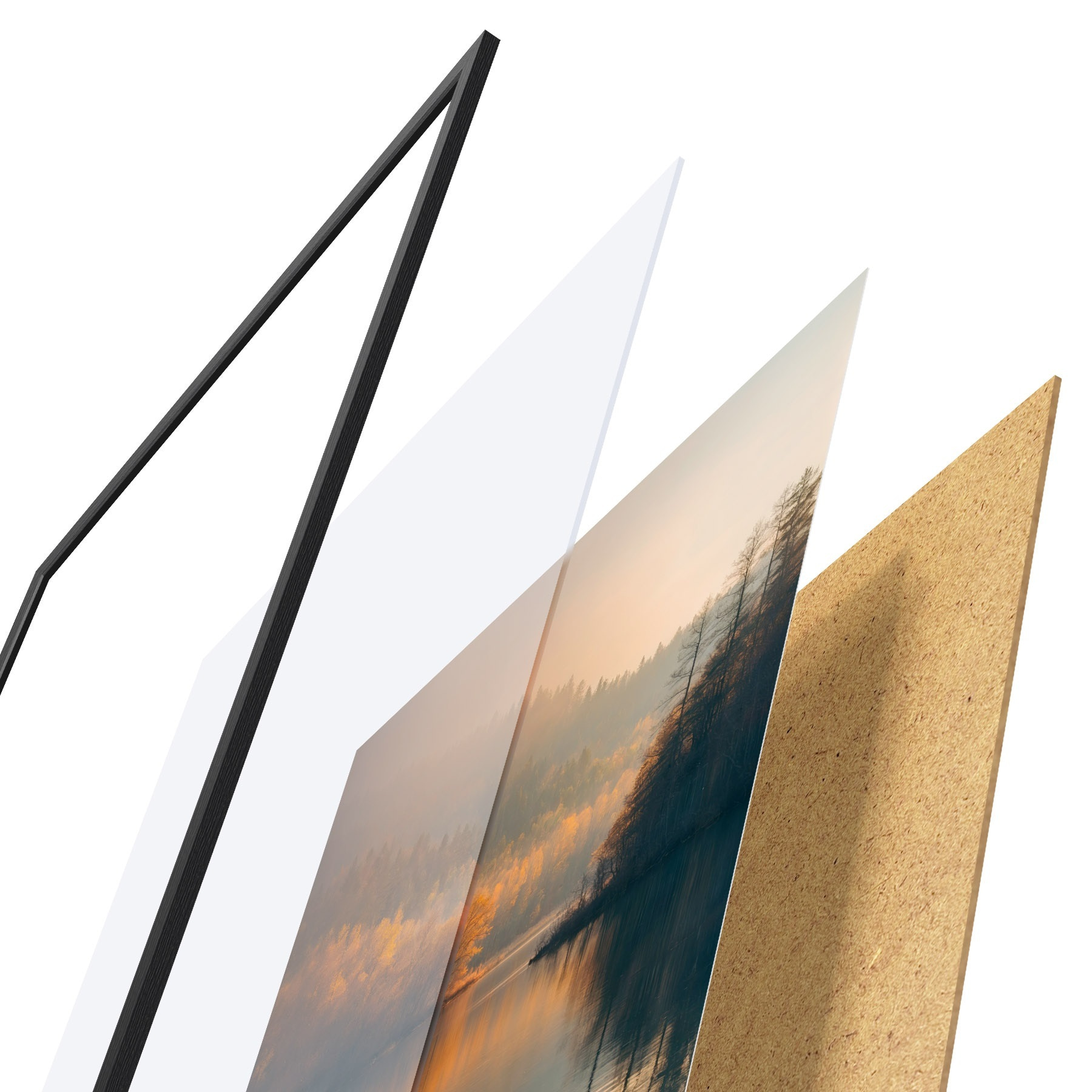 Il poster è composto da cornice, plexiglass, immagine stampata e supporto in truciolato. Il poster può essere immediatamente appeso alla parete grazie ai supporti sul retro.