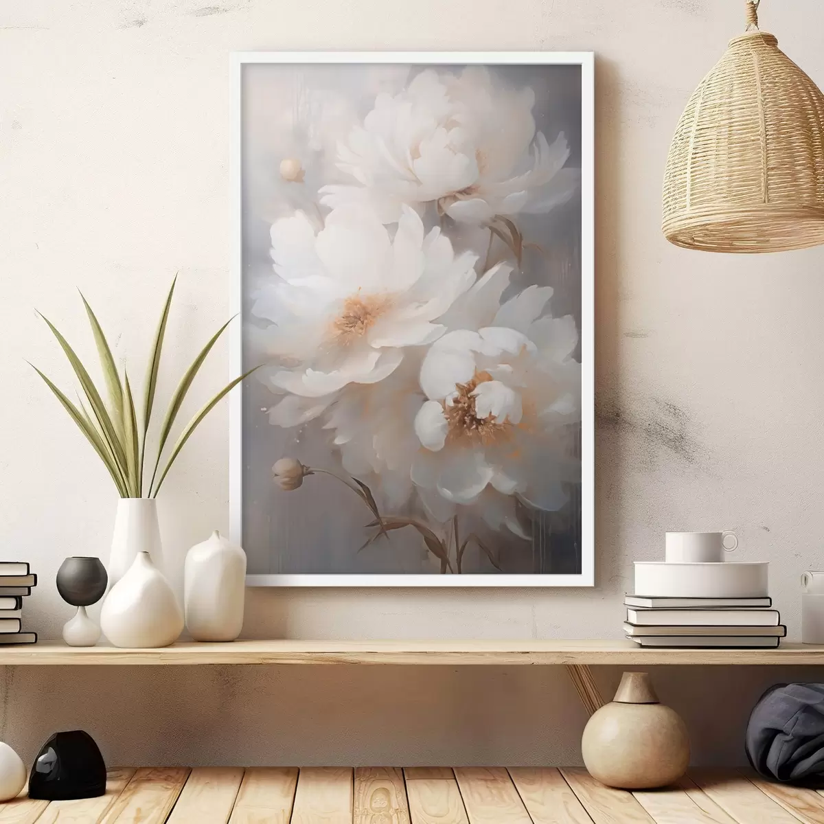 Poster Fiori e steli bianchi su sfondo sfocato f43473