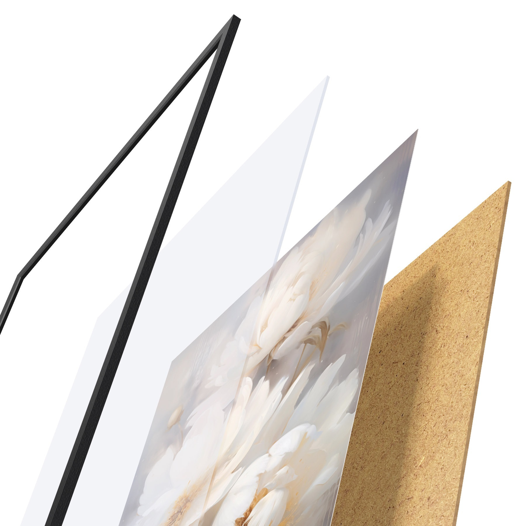 Il poster è composto da cornice, plexiglass, immagine stampata e supporto in truciolato. Il poster può essere immediatamente appeso alla parete grazie ai supporti sul retro.