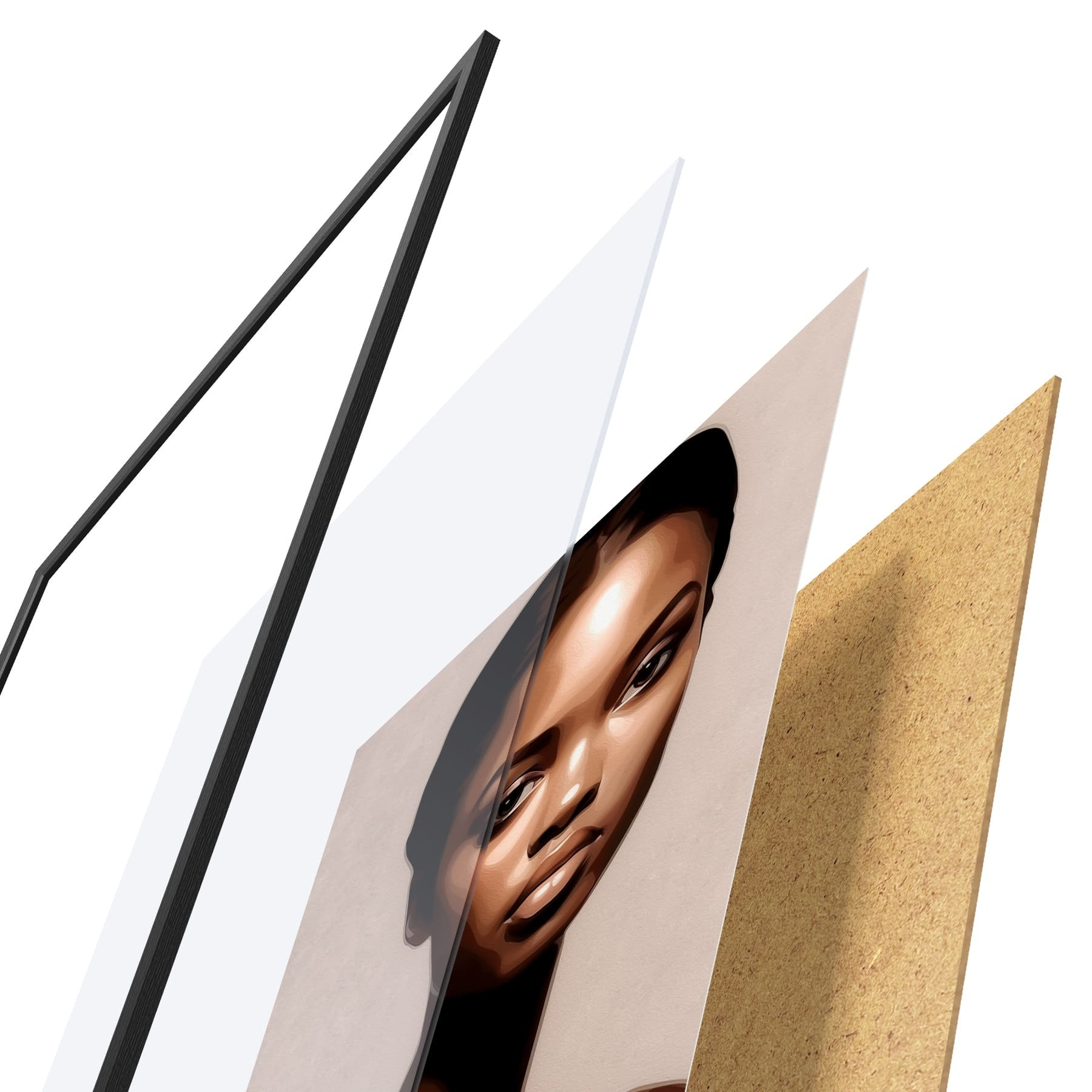 Il poster è composto da cornice, plexiglass, immagine stampata e supporto in truciolato. Il poster può essere immediatamente appeso alla parete grazie ai supporti sul retro.