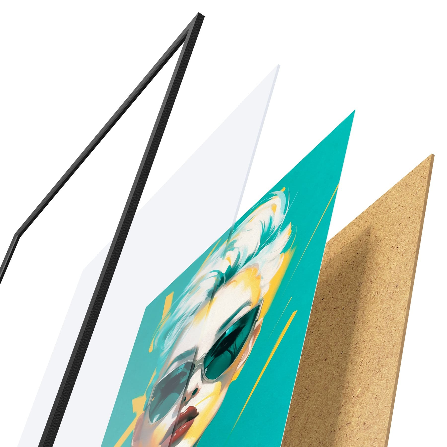 Il poster è composto da cornice, plexiglass, immagine stampata e supporto in truciolato. Il poster può essere immediatamente appeso alla parete grazie ai supporti sul retro.