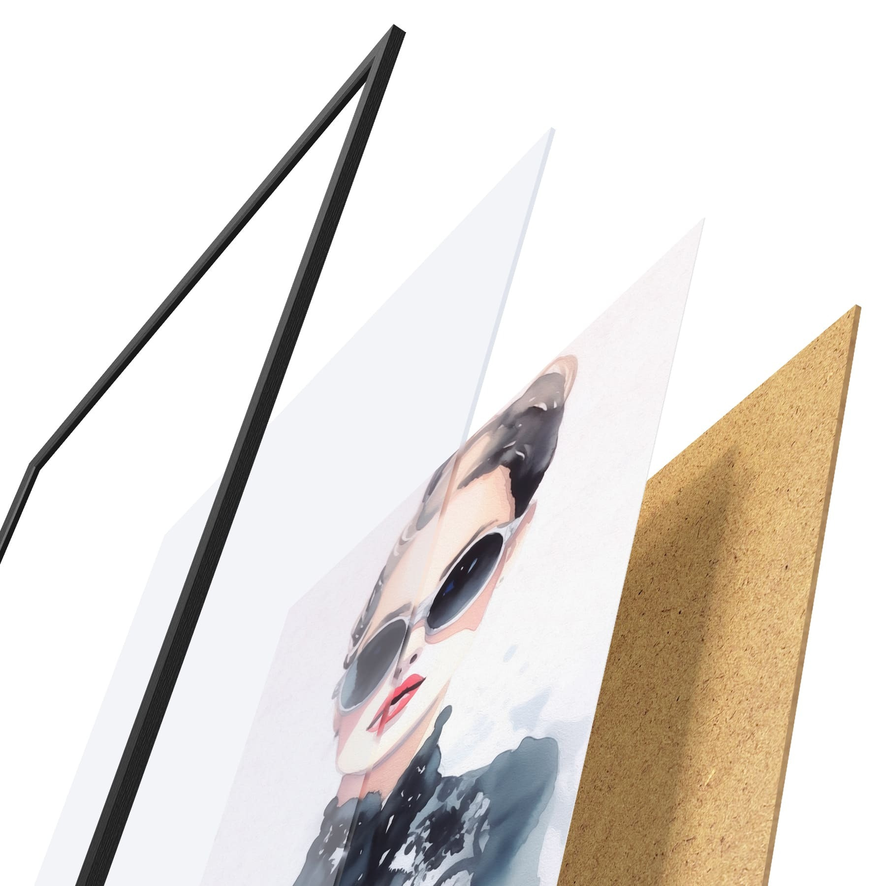 Il poster è composto da cornice, plexiglass, immagine stampata e supporto in truciolato. Il poster può essere immediatamente appeso alla parete grazie ai supporti sul retro.