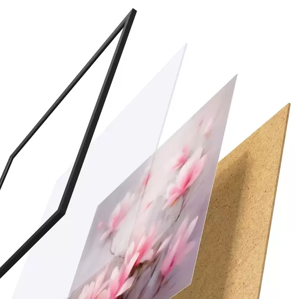 Il poster è composto da cornice, plexiglass, immagine stampata e supporto in truciolato. Il poster può essere immediatamente appeso alla parete grazie ai supporti sul retro.
