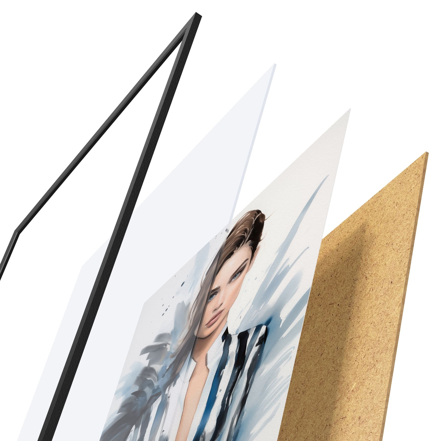 Il poster è composto da cornice, plexiglass, immagine stampata e supporto in truciolato. Il poster può essere immediatamente appeso alla parete grazie ai supporti sul retro.