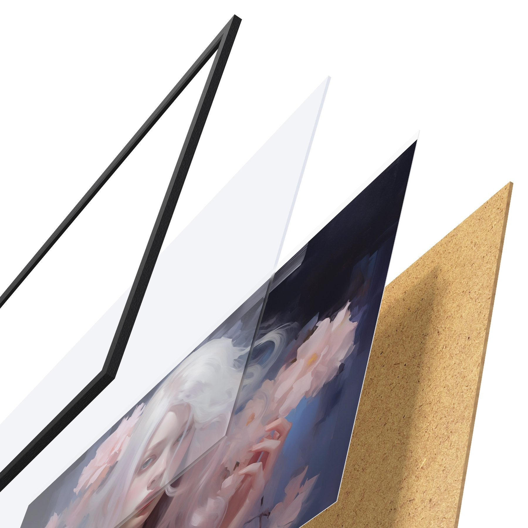 Il poster è composto da cornice, plexiglass, immagine stampata e supporto in truciolato. Il poster può essere immediatamente appeso alla parete grazie ai supporti sul retro.