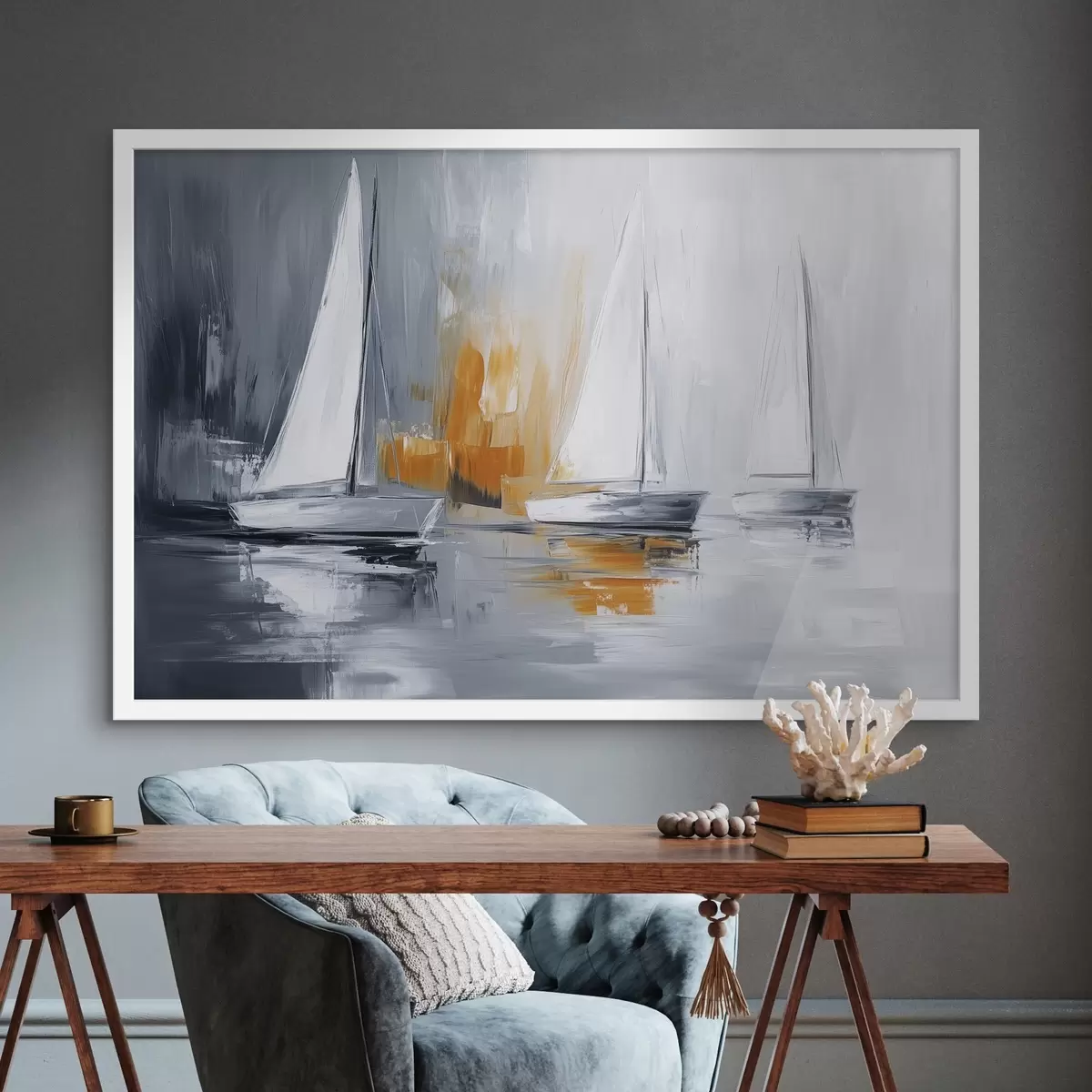 Poster Barche a vela, astrazione, disegno in stile acrilico, grigio e arancione Nr f43499