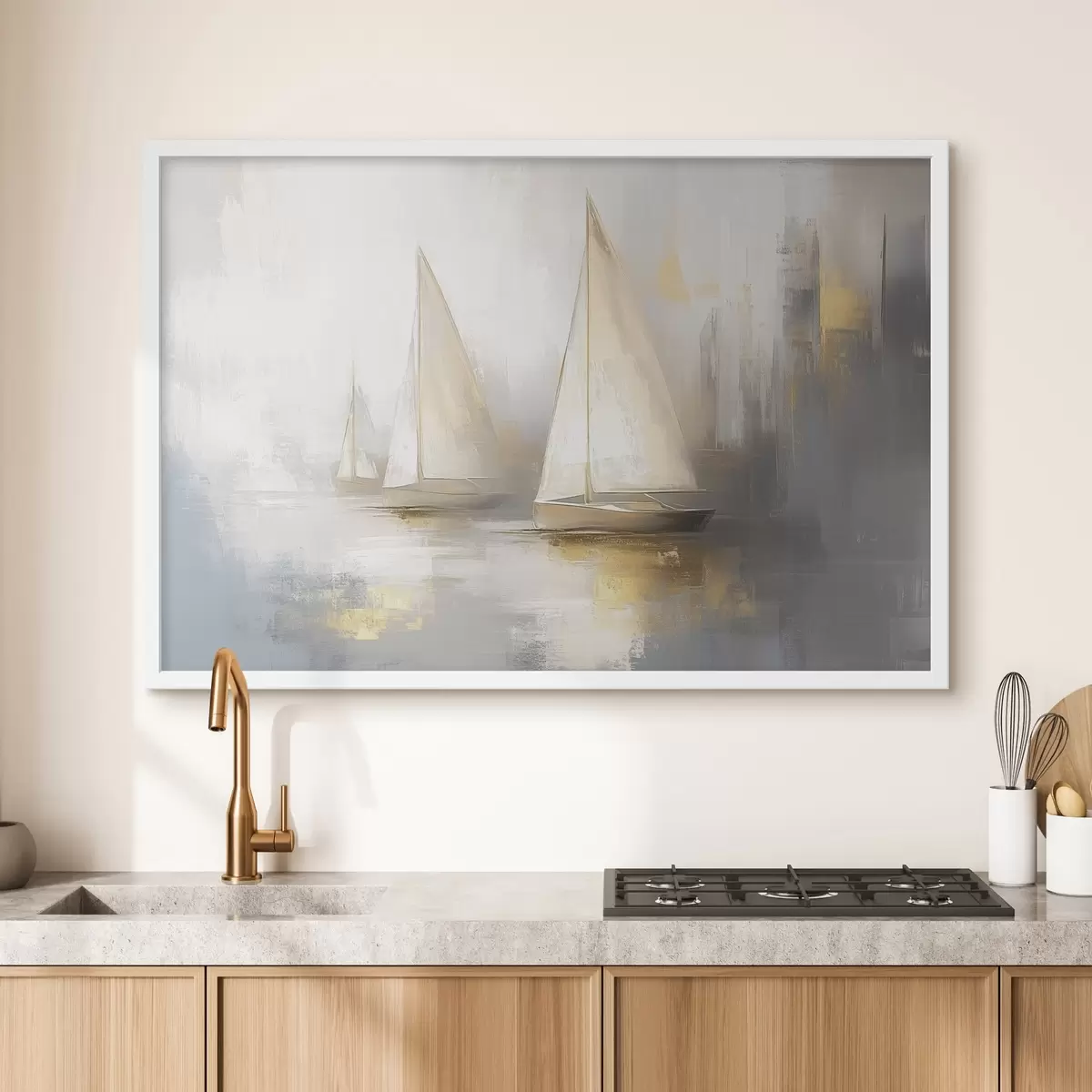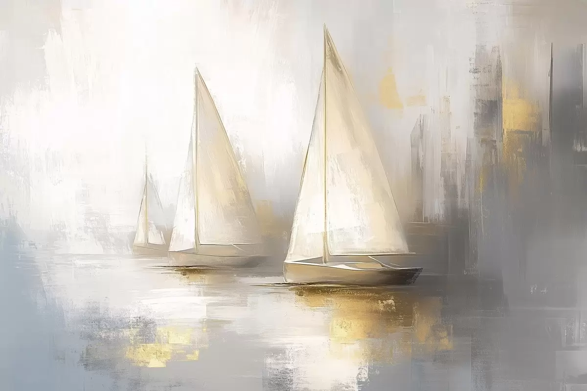 Poster Barche sul mare, astrazione, stile olio, colori beige Nr f43505
