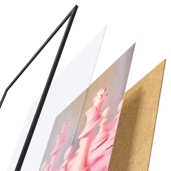 Il poster è composto da cornice, plexiglass, immagine stampata e supporto in truciolato. Il poster può essere immediatamente appeso alla parete grazie ai supporti sul retro.