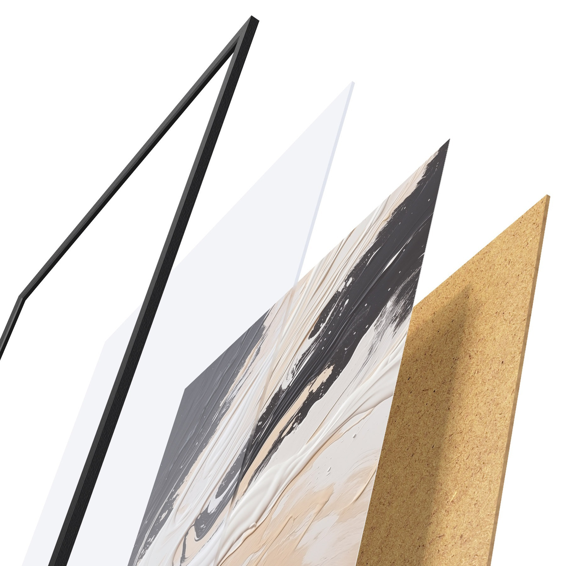 Il poster è composto da cornice, plexiglass, immagine stampata e supporto in truciolato. Il poster può essere immediatamente appeso alla parete grazie ai supporti sul retro.