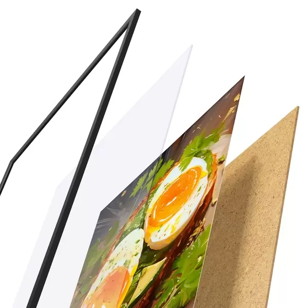 Il poster è composto da cornice, plexiglass, immagine stampata e supporto in truciolato. Il poster può essere immediatamente appeso alla parete grazie ai supporti sul retro.