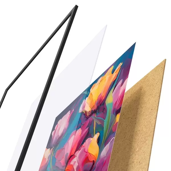 Il poster è composto da cornice, plexiglass, immagine stampata e supporto in truciolato. Il poster può essere immediatamente appeso alla parete grazie ai supporti sul retro.