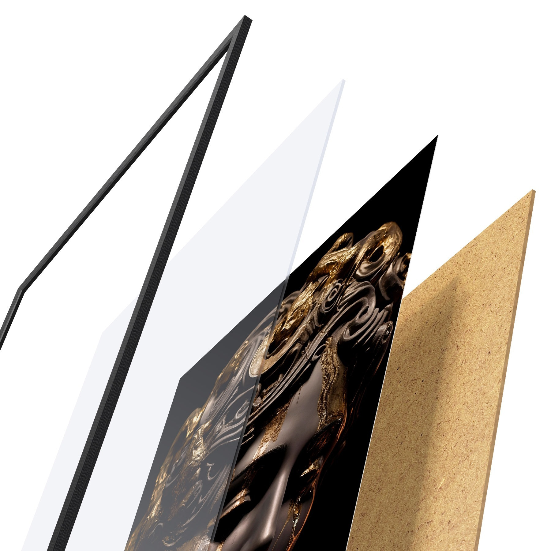 Il poster è composto da cornice, plexiglass, immagine stampata e supporto in truciolato. Il poster può essere immediatamente appeso alla parete grazie ai supporti sul retro.