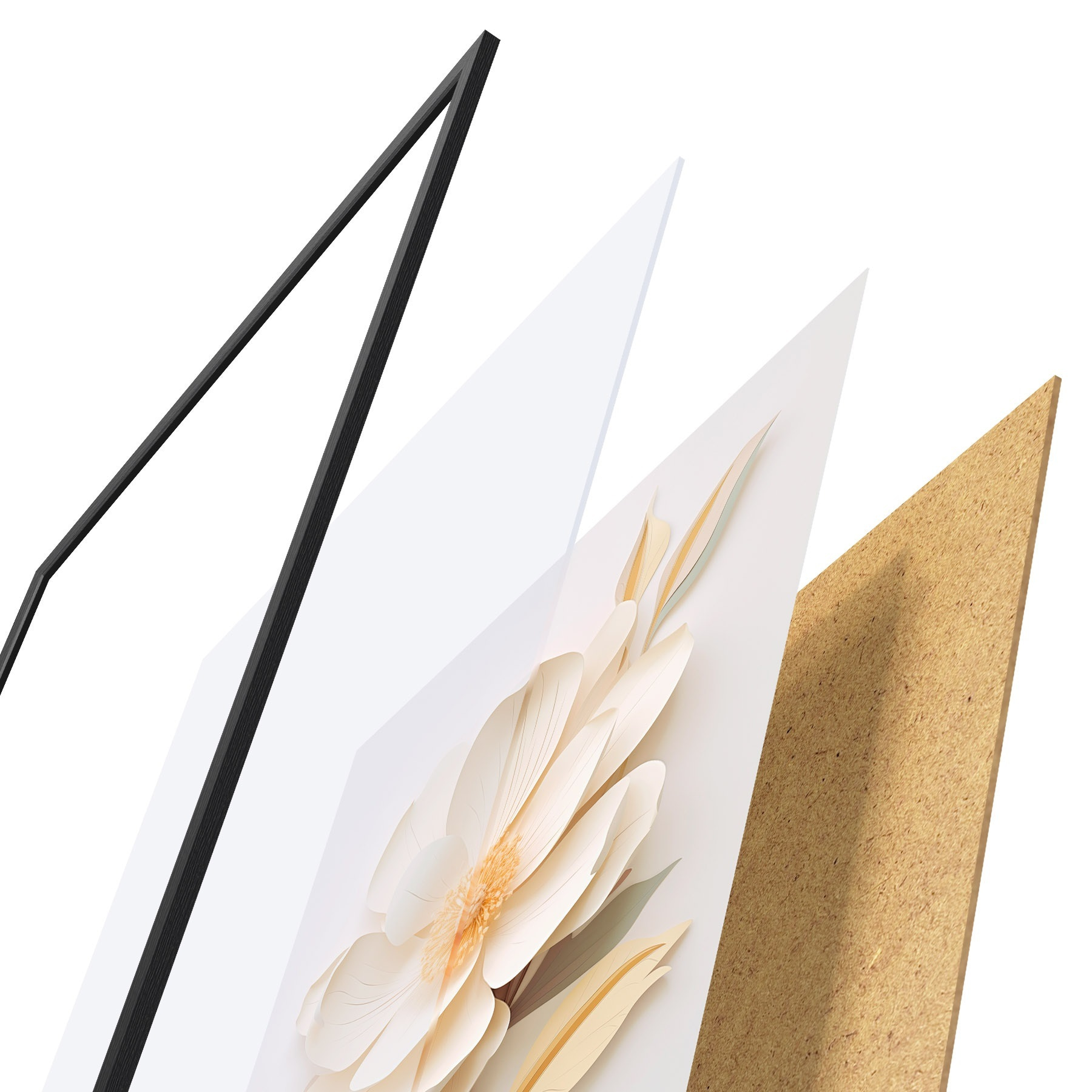 Il poster è composto da cornice, plexiglass, immagine stampata e supporto in truciolato. Il poster può essere immediatamente appeso alla parete grazie ai supporti sul retro.