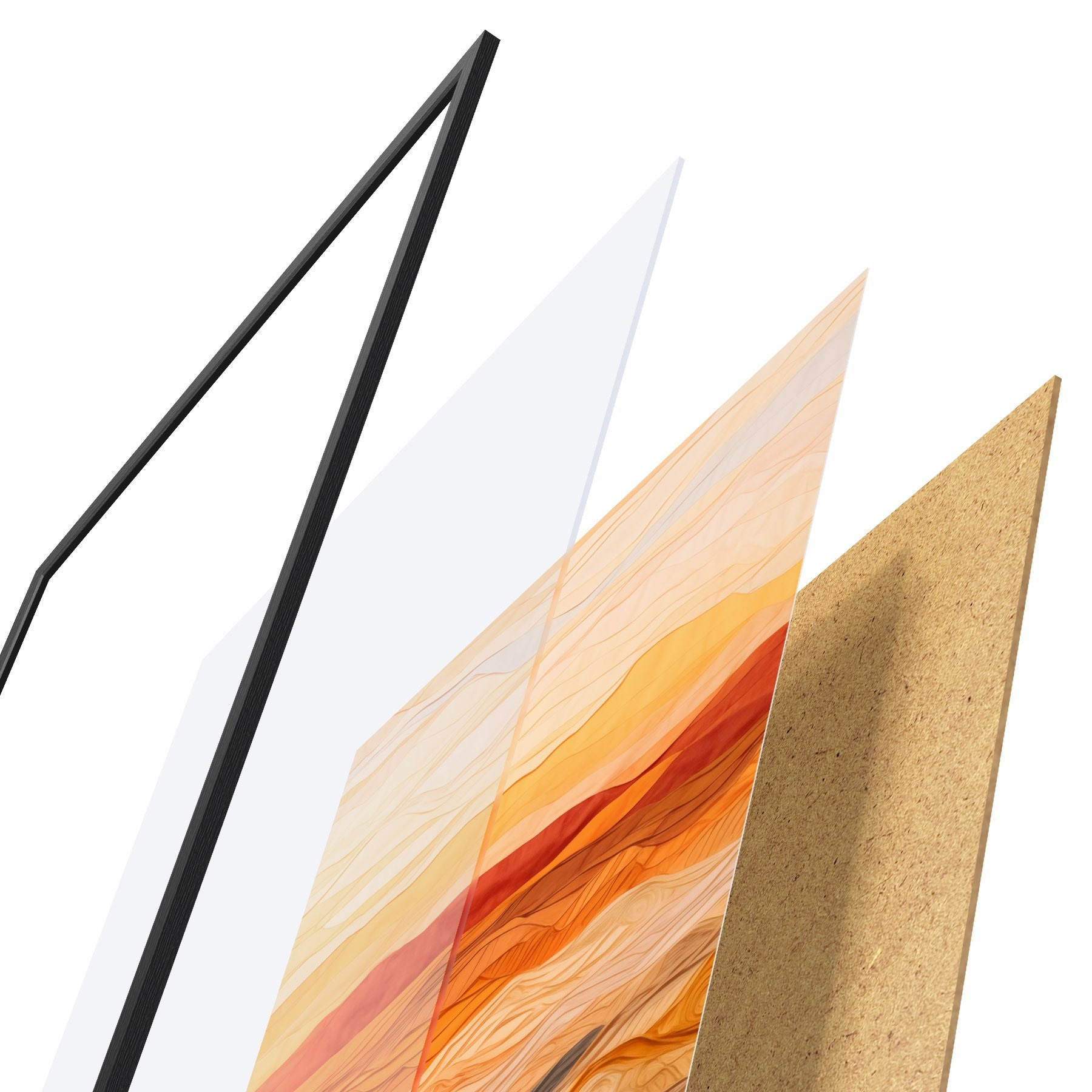 Il poster è composto da cornice, plexiglass, immagine stampata e supporto in truciolato. Il poster può essere immediatamente appeso alla parete grazie ai supporti sul retro.